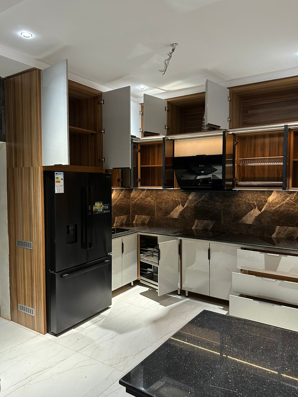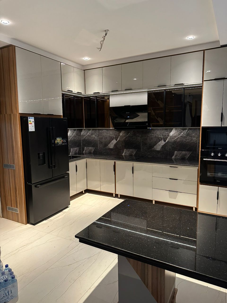 Cuisine complète sur mesure avec rangements optimisés. Plan de travail premium et finitions haut de gamme.